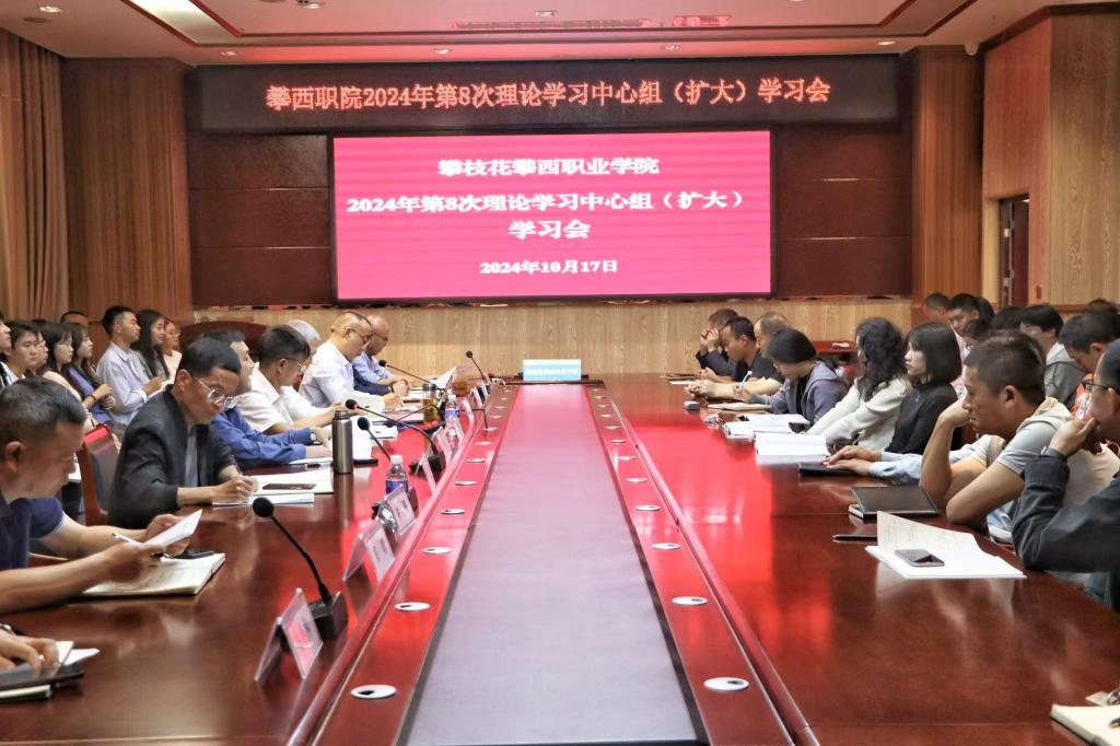 10月17日下午,我校2024年第8次理论学习中心组(扩大)学习会在二实训楼四楼会议室召开,专题学习全国教育大会精神。县委教育工委书记、县教育和体育局党组书记、县教育和体育局局长柳华平,县教育和体育局党政办主任林国列席旁听指导。学校领导班子成员、全体教职工参加了学习会。学校副书记、执行院长赵海林主持会议。
