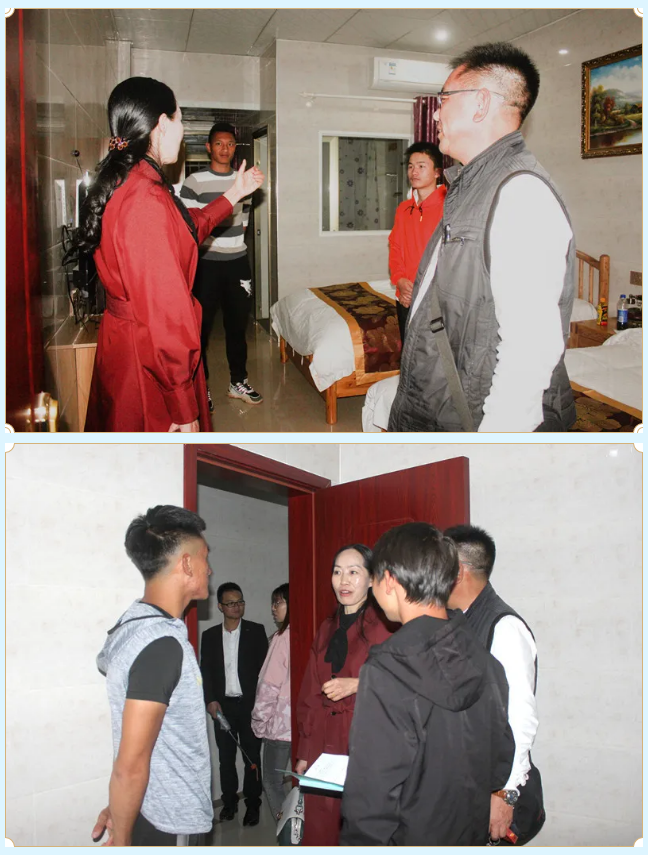 为了进一步了解新生入学情况,给同学们更多关爱,帮助他们尽快适应新环境,融入攀西职业学院大家庭,2020年10月18日晚上7点半,学院副院长周再玉带队,教务处副处长袁忠、后勤保卫处副处长倪继成、各班班主任及辅导员共同来到新生宿舍,看望新同学。