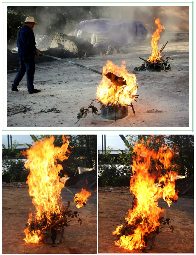 灭火演练开始,保卫处张云友引燃两个柴堆,熊熊大火迅速燃烧起来,倪副处长再次按照灭火流程进行灭火示范。教师和学生代表严格按照灭火流程,有序使用灭火器现场进行灭火实际操作,两个柴堆反复被浇上汽油并引燃,又反复被师生们用干粉灭火器扑灭,大家在反复实践中掌握灭火器的使用方法及灭火技巧。