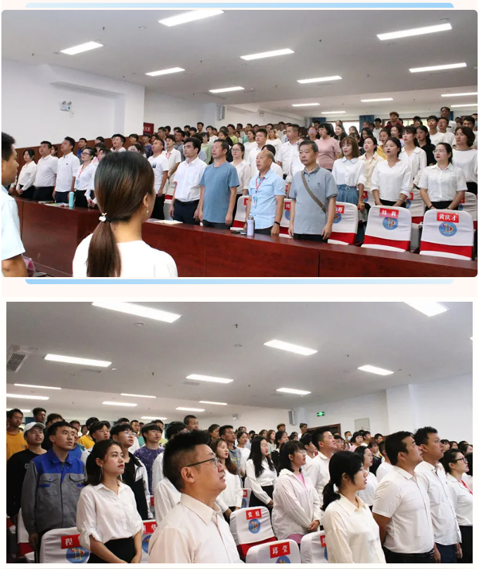 学院组织人事处副处长马小林带领全体教师宣誓,“忠诚人民教育事业,履行教师职责,敬业爱生,教书育人,为人师表,做有理想信念、有道德情操、有扎实学识、有仁爱之心的好老师,努力促进学生全面发展,为培养具有创新精神和实践能力的应用型人才而不懈奋斗! ” 铿锵有力的誓言代表着全体教师努力的决心,也激励着全体教师献身党的教育事业,不忘初心,砥砺奋进。