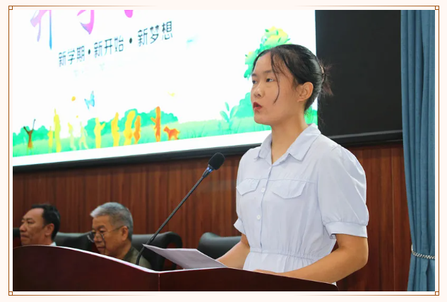 2021级新生代表赵鑫兰发言,她为能加入攀西职院大家庭感到欣慰,她感谢院领导和老师的关怀,感谢学长、学姐的帮助,表示将踏踏实实从第一天做起,确定目标,调整心态,规划好自己的大学生活,针对所学专业选好努力方向,从小事做起,在大学中度过无悔的青春岁月。