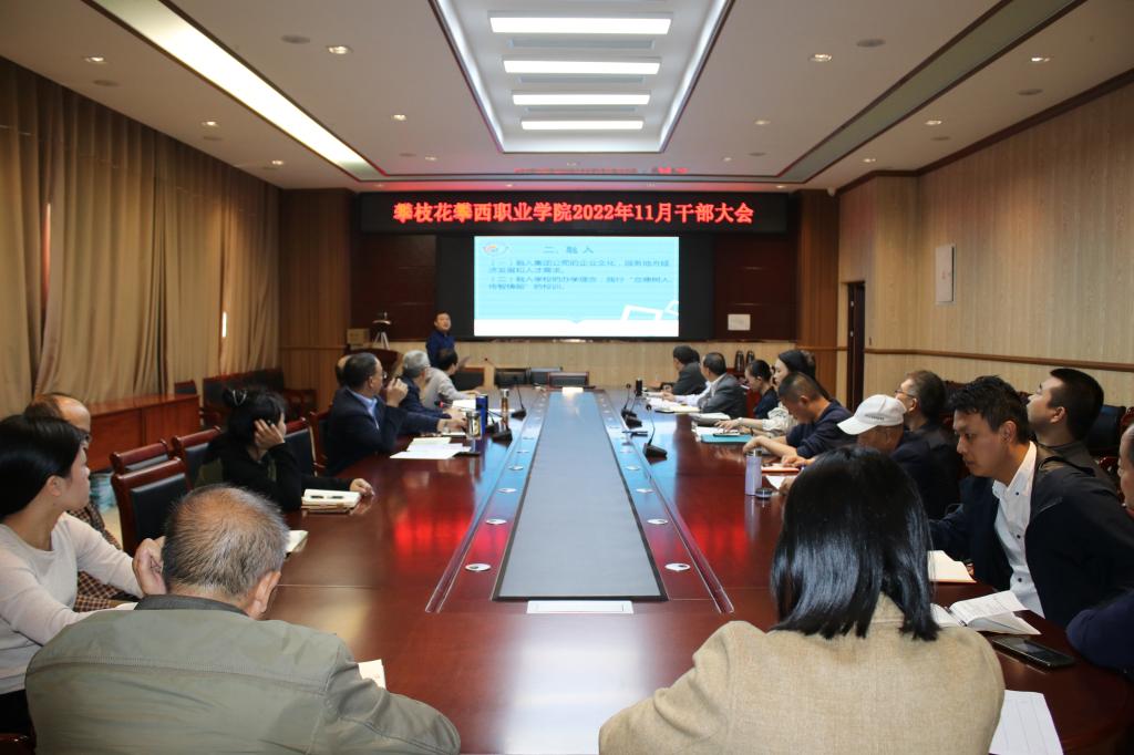 万辉君宣布了学院党政领导班子成员分工调整的决定,并对全校广大干部提出希望和要求。一是要勤学习、强本领。要深入学习宣传贯彻党的二十大精神,全面贯彻习近平新时代中国特色社会主义思想,要深学笃行、学思践悟,既要学理论、学时事、学业务,又要学经验、学方法、学技能,提升理论政策水平和教育教学管理能力,形成你追我赶、共同进步的良好工作氛围。二是要拼干劲、重团结。在工作中要做到心往一处想,劲往一处使,发扬“跳起来摘桃子”的拼劲,尽最大的努力、干出最好的结果,不断打造风正、气顺、心齐、劲足的良好政治生态。三是要强管理、创特色。要进一步加强制度体系建设,推进学校章程的落地落实。要持续推进“现代农业特色专业群”“康养专业群”“机电专业群”等3大特色专业群建设,探索学生教育管理的方法路径,为把学院建设成为攀西地区本土人才第一输出地、天府“第二粮仓”人才支撑地而努力奋斗!