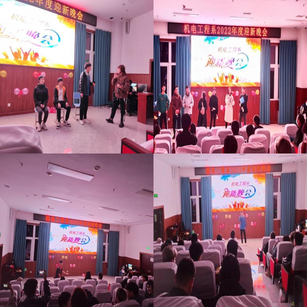流光溢彩迎新夜,心心连新齐飞扬。为丰富校园文化,活跃学习氛围,展示师生风采,增进师生间的情谊和同学间的友谊,2022年12月14日晚7点,机电工程系2022年迎新晚会在二实训楼阶梯教室拉开帷幕。
