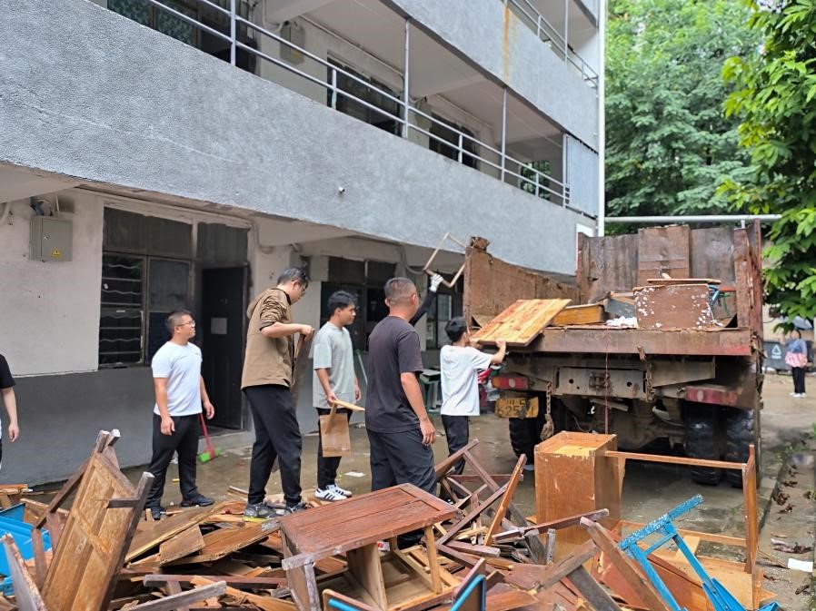 在学校李玉德副院长的带领下,各系部各处室的干部和教职工,按照分配区域,对部分寝室、走廊、过道、院坝等进行了清扫,将学生寝室内废弃的物品进行全面清理扫除,将寝室内的废旧桌椅搬出进行集中处置,把过道的垃圾装入垃圾袋,拔出院坝中的杂草......通过大家的共同努力,学生寝室区域变得干净整洁,焕然一新,充满了生机与活力,为即将踏入大学生活的大一新生们营造了一个温馨而舒适的学习生活环境。