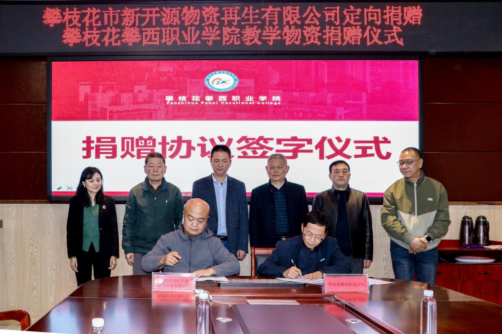 11月29日下午,攀枝花市委统战部副部长杨毅军,攀枝花市汽车流通商会副会长、市新开源物资再生有限公司(以下简称新开源公司)董事长兼总经理崔大为,市职业职教社服务中心相关负责人一行莅临我校出席新开源公司定向捐赠pg游戏下载入口教学物资捐赠仪式。我校全体校领导班子出席,相关处室系部负责人参加。