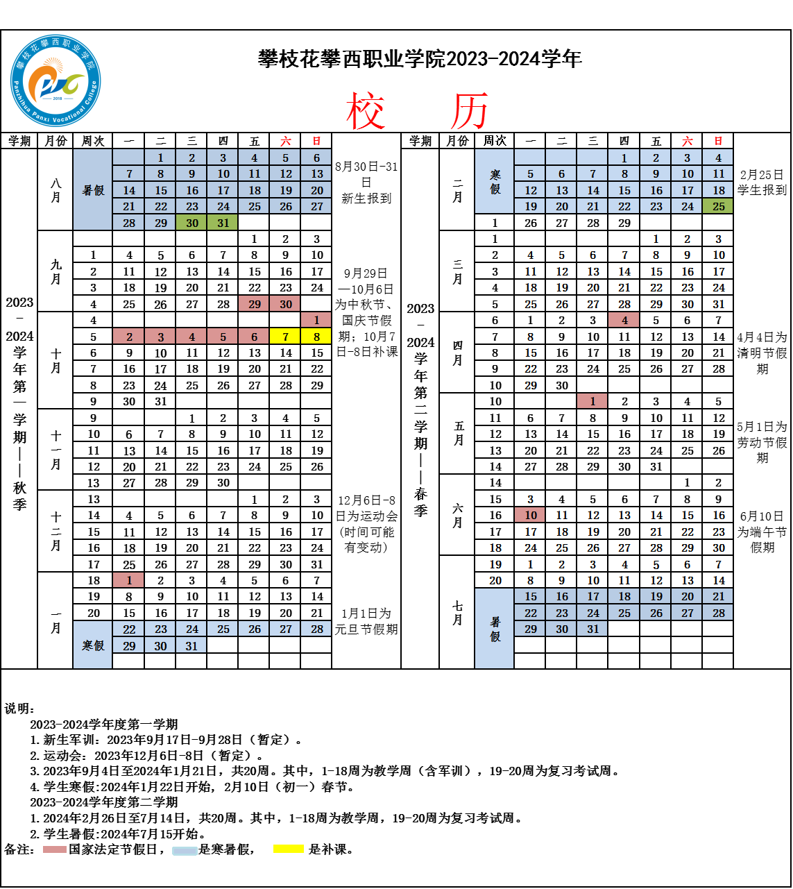 pg游戏下载入口2023-2024学年校历