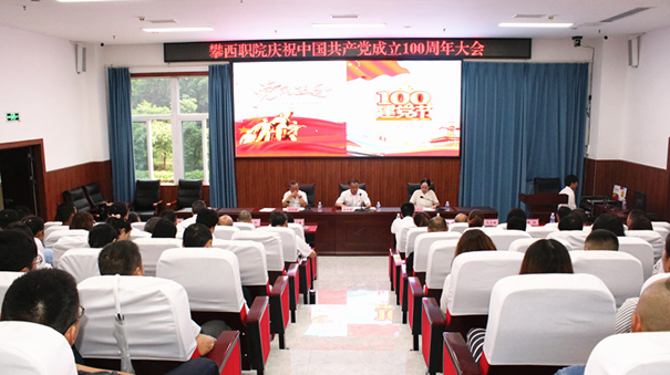 为庆祝中国共产党百年华诞,增强全体党员凝聚力,激励广大党员干部与时俱进、担当作为,也为表扬先进典型, 2021年7月1日上午8点,攀西职院全体党员、干部及教职员工在二实训楼阶梯会议室召开庆祝中国共产党成立100周年大会,党史学习教育领导小组副组长周再玉主持会议。