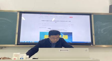 郑主任首先强调:要认真领悟并贯彻落实万辉君书记在学院理论学习辅导会上的讲话精神,执行院长赵海林的讲话精神;随后通过播放十九届六中全会视屏会议、解读中国共产党第十九届中央委员会第六次全体会议公报的方式组织学习;最后郑主任强调:我们要把全会精神的贯彻与落实立德树人根本任务,与学科建设、人才培养、科学研究、社会服务相结合,为党育人,为国育才。