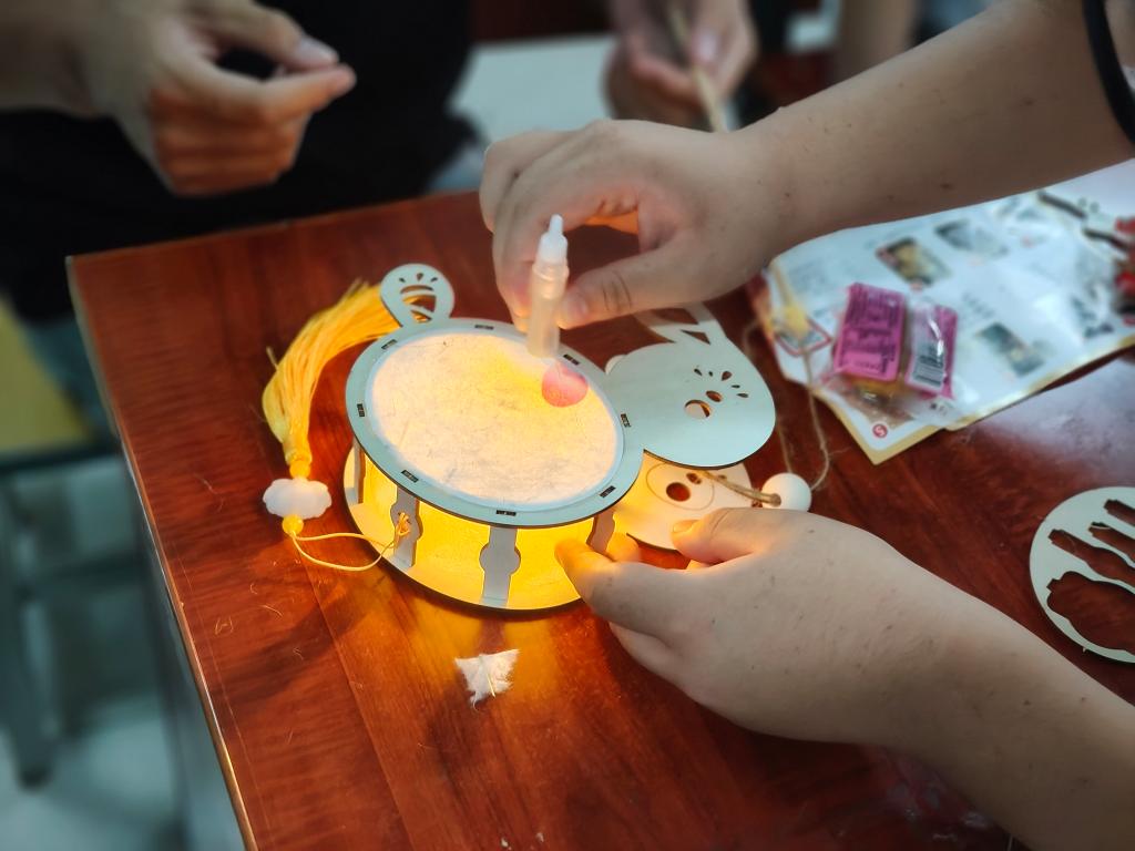 活动伊始,同学们在专业指导下投入灯笼制作环节。从骨架搭建到灯面绘制,参与者们充分发挥创意,精心制作各具特色的中秋灯笼。有的同学在灯笼上描绘明月、玉兔等传统图案,有的书写节日祝福寄语,现场气氛温馨而热烈,欢声笑语不绝于耳。